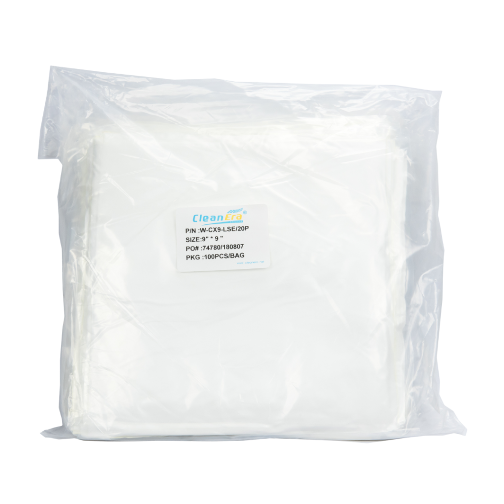Cleanera W-CX4-LSE | Mircofiber Wipes are manufactured and packed in Cleanroom Class 10/100 environment. Come in Varies type edge cutting , support with Critical specification and full test reports. Generally used in electronic manufacturing, hospital theatre, cleanroom, bio lab, wafer fab, solar manufacturing and pharmaceutical manufacturing company. | Type of seal Edge : LSE Cut Size : 4"x4" PKG : 100PCS/BAG; 10BAGS/CTN |